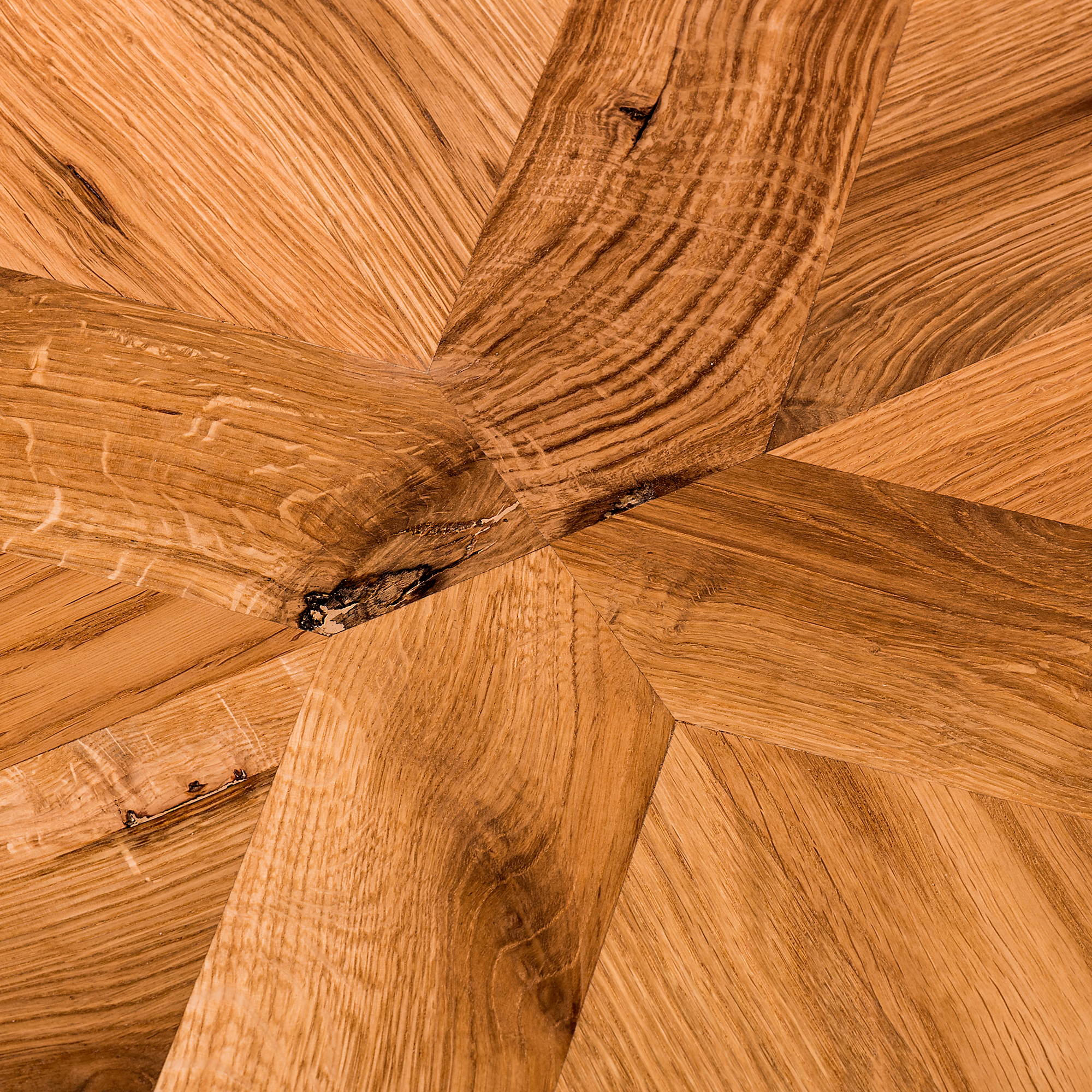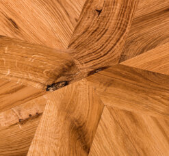 - Material Tischplatte: Holz, Wildeiche (offene Aststruktur)