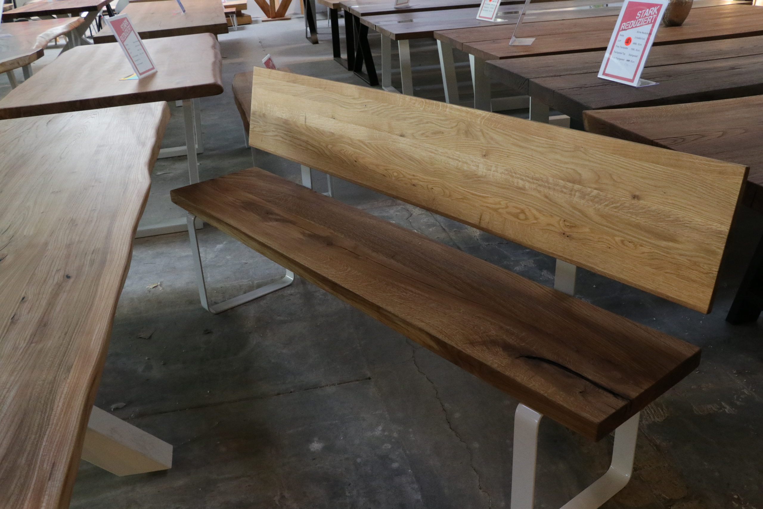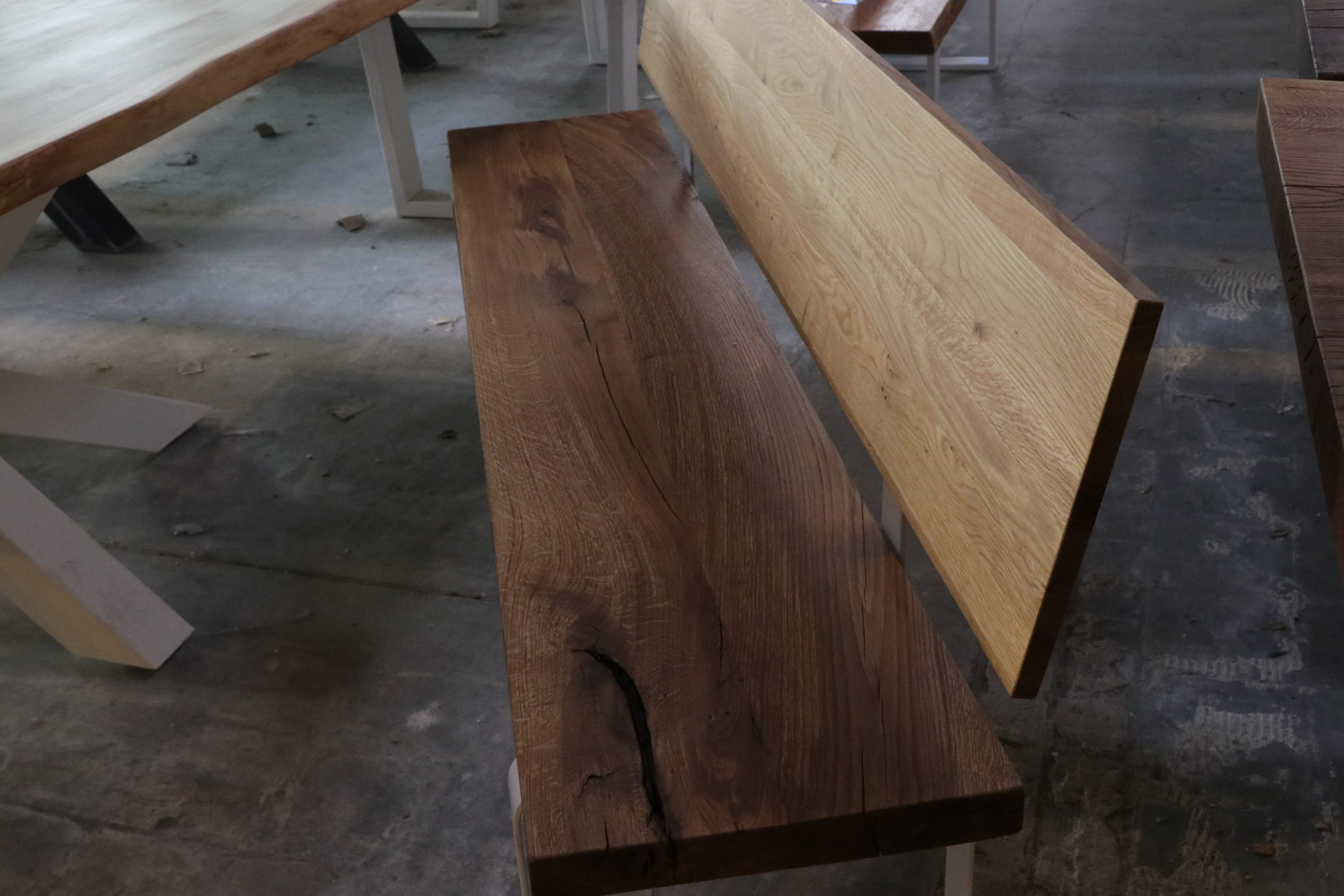 Massivholzbank Wildeiche Sitzbank mit Lehne 200 cm