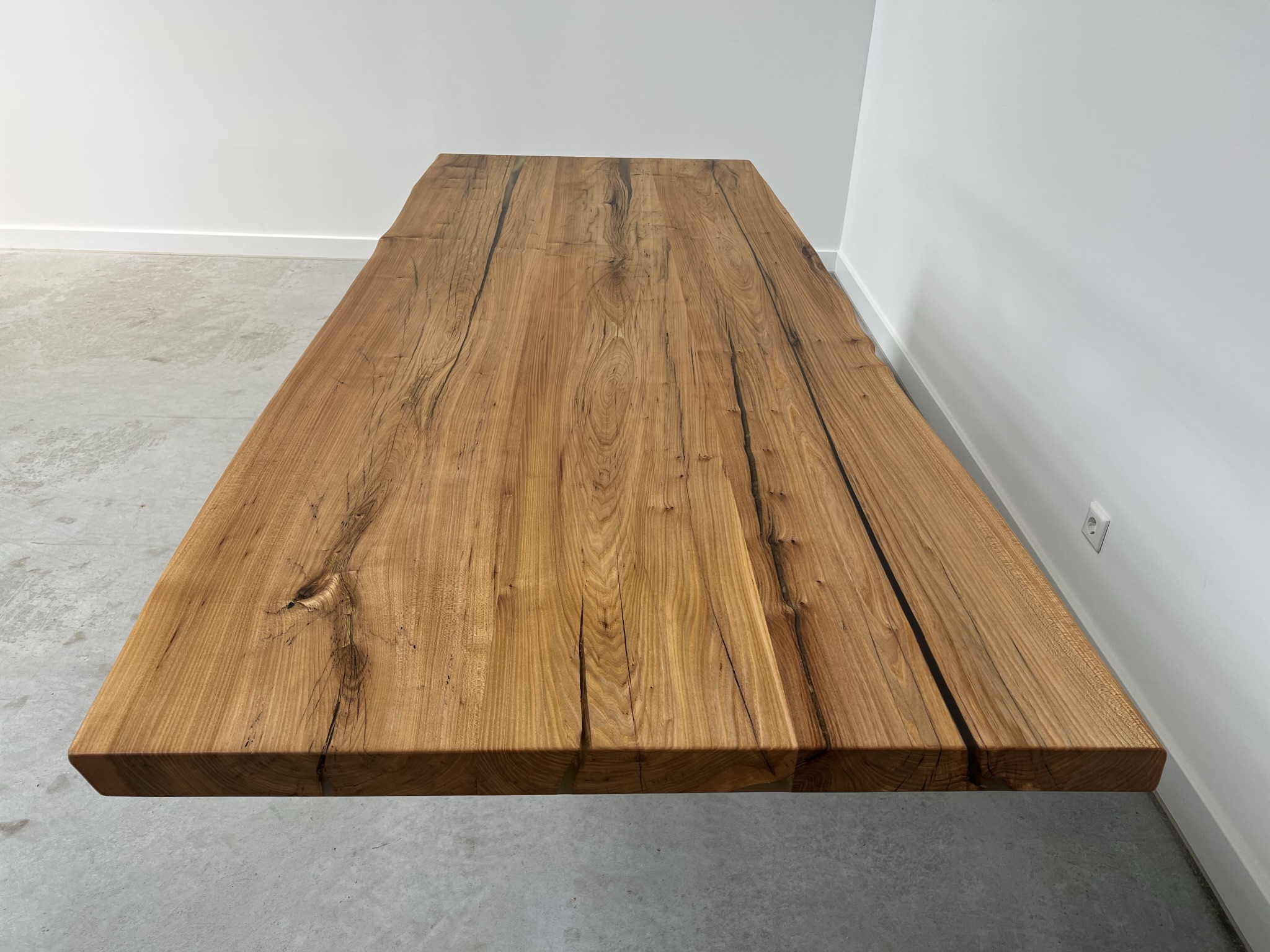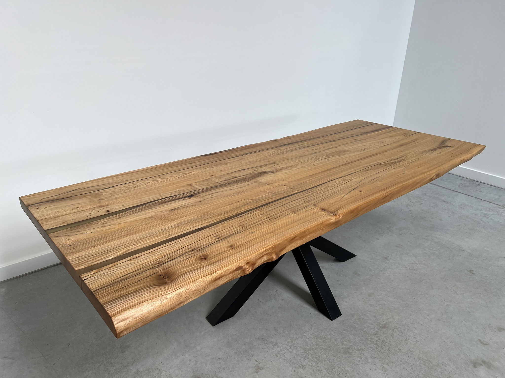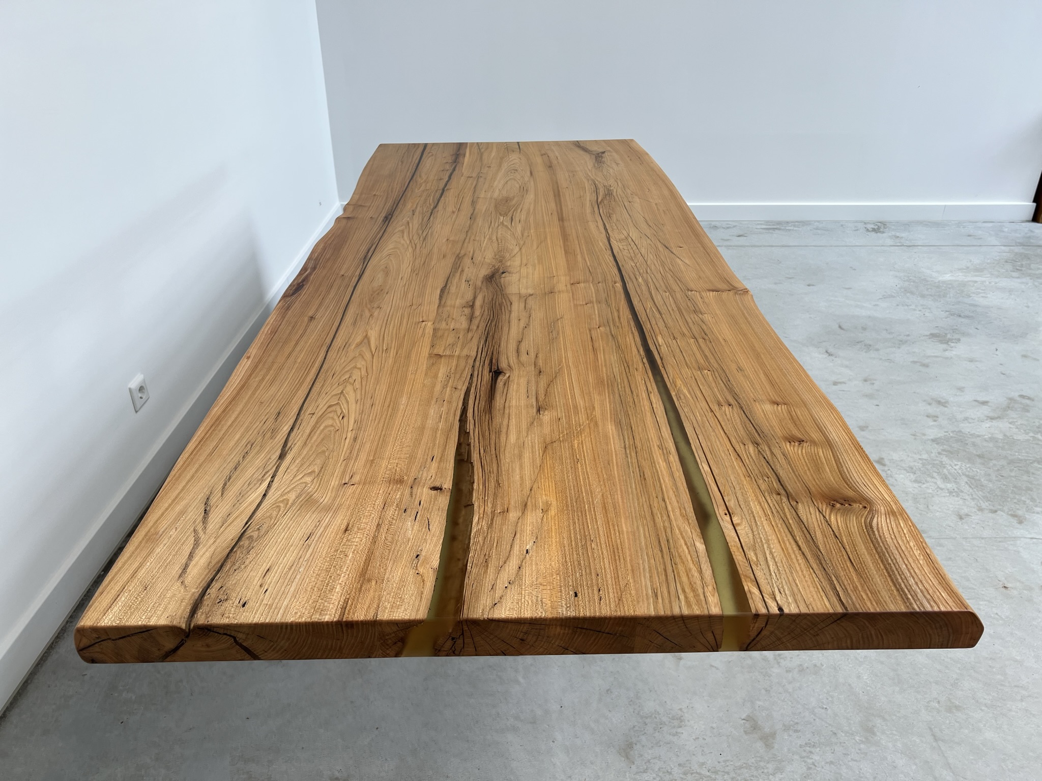 - Die Massivholzplatte wurde aufwendig mit Epoxidharz veredelt