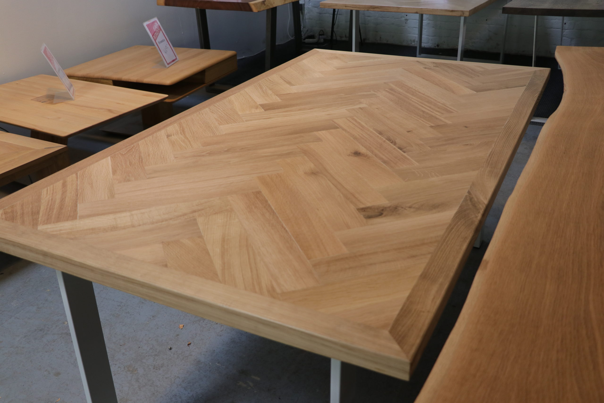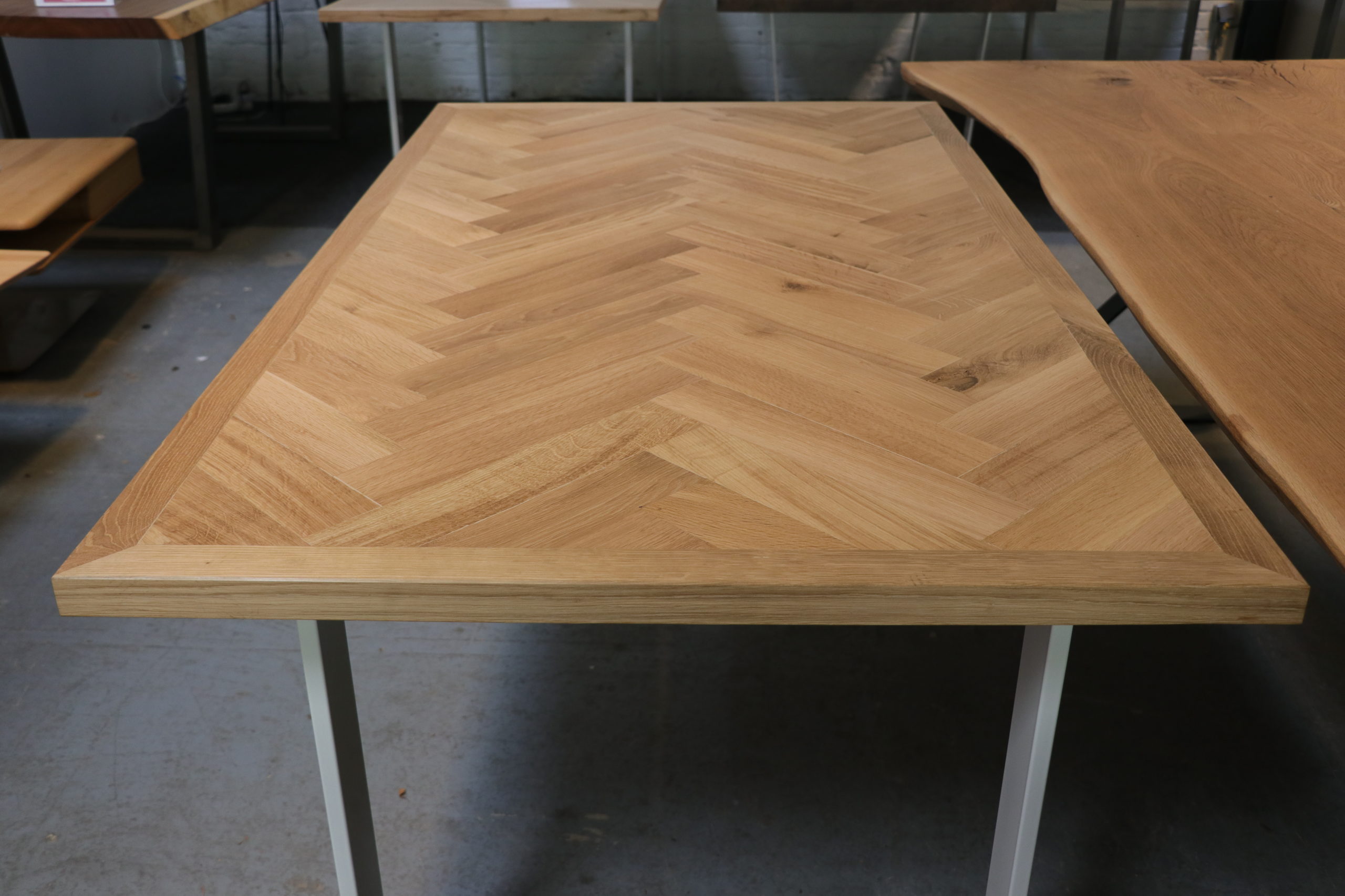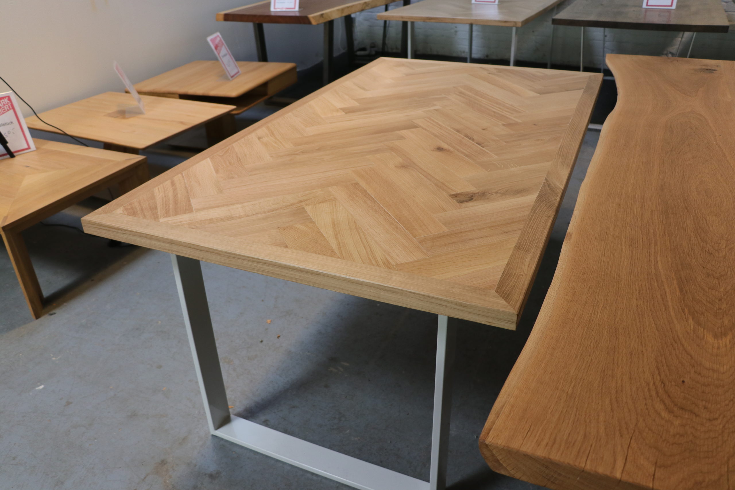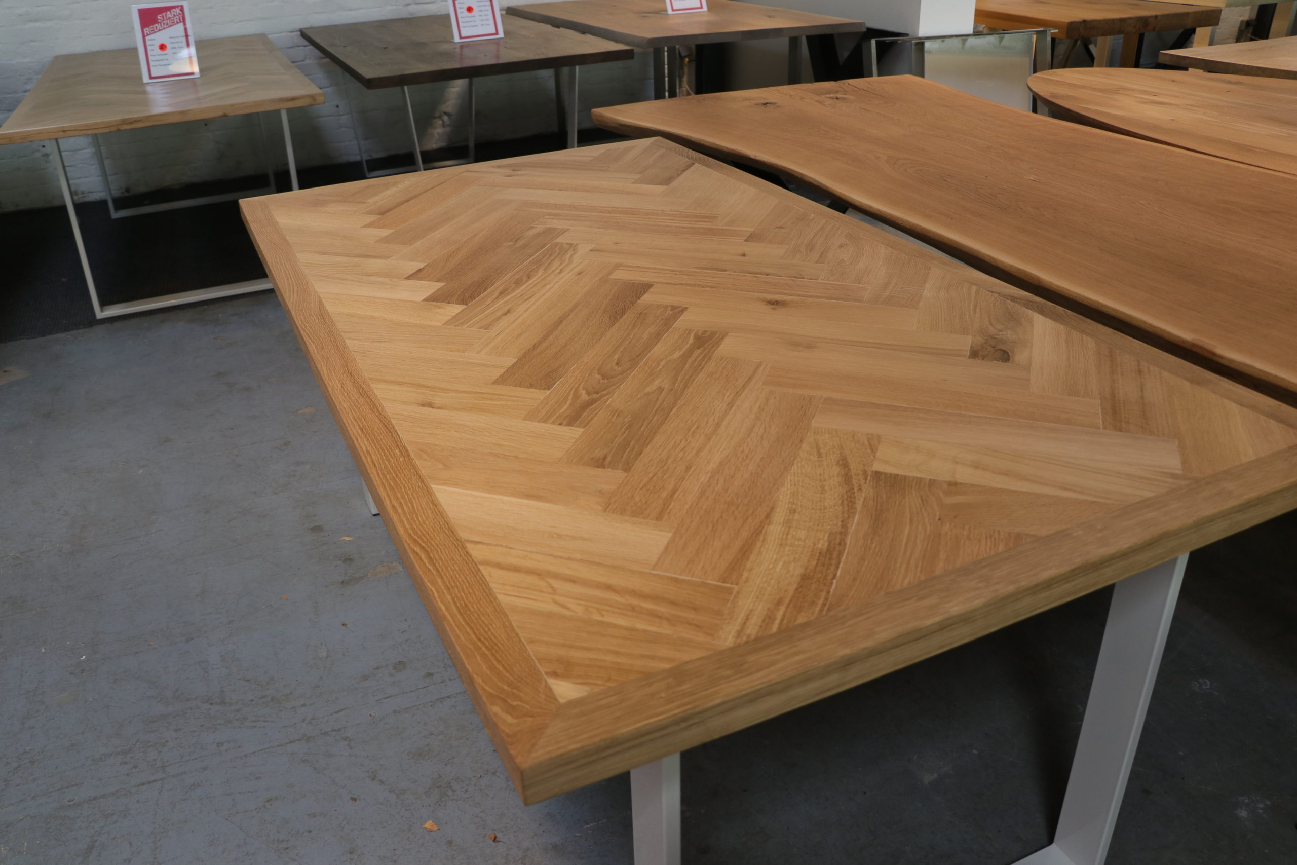 - Massivholz Esszimmertisch Wildeiche Fischgrätenmuster